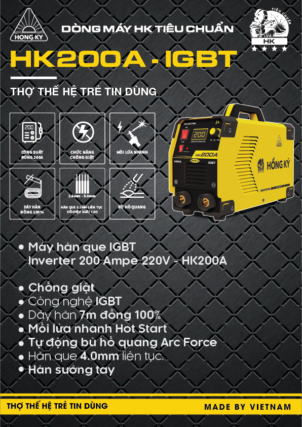 Máy hàn Hồng Ký HK 200A IGBT mẫu cải tiến mới, hiệu suất làm việc cao hơn, bền bỉ hơn