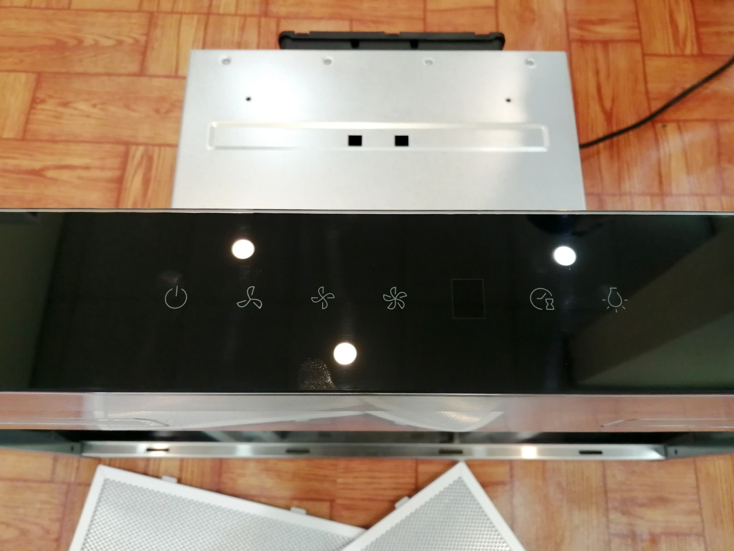 Chất liệu Inox-Kính Điều khiển cảm ứng điện tử + Hẹn giờ Màn hình hiển thị LCD Ống thoát Ø 150mm Đèn Led tiết kiệm điện:4x1.5W Bộ lọc than hoạt tính và lưới lọc Inox