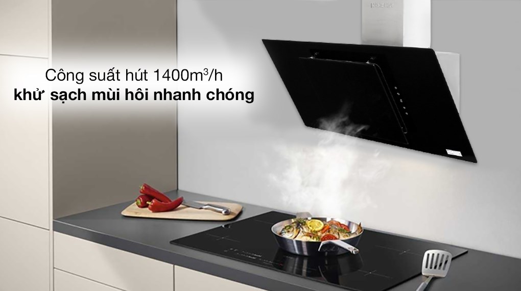 THÔNG TIN KỸ THUẬT Ống thoát Ø150 Công suất motor: 195W Công suất hút: 1400m3/h Độ ồn: 46dbA (Công nghệ Ultra Swing siêu êm) Điện áp: 220v/50Hz Kích thước: 900mm