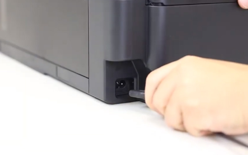 Sau khi đóng nắp máy in, kết nối dây nguồn để có thể bắt đầu sử dụng máy.