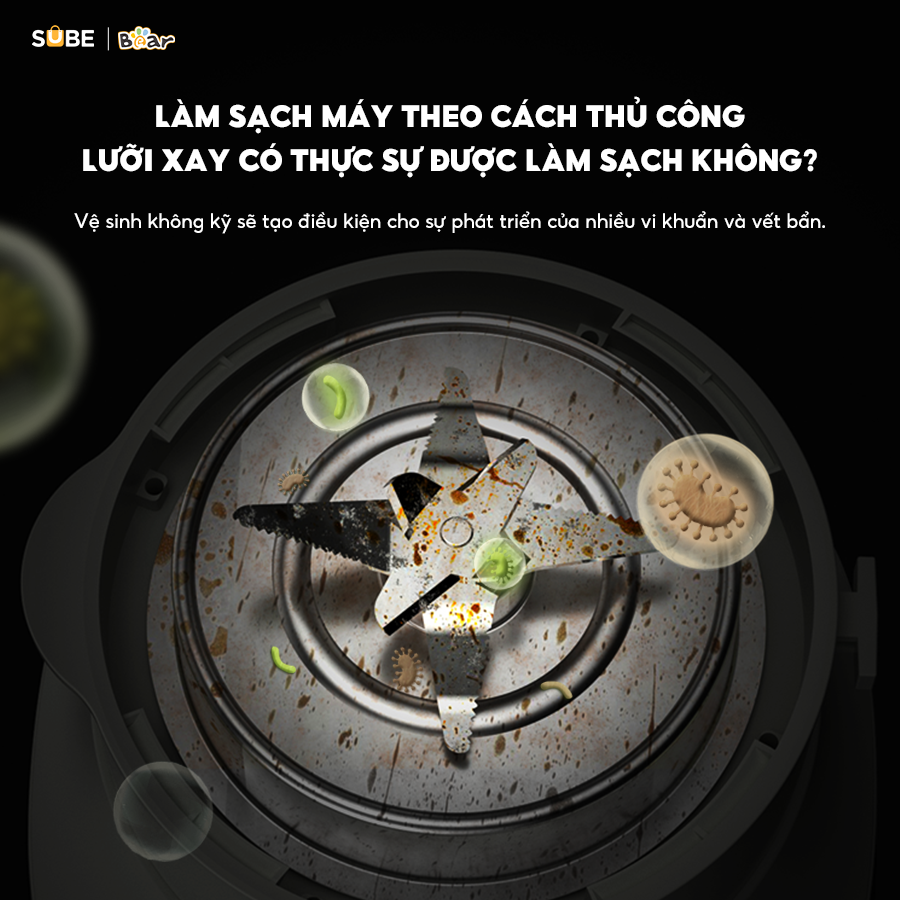 - Làm sạch và khử trùng: giúp loại bỏ hoàn toàn vi khuẩn và các tạp chất gây hại còn lại trong cối xay.