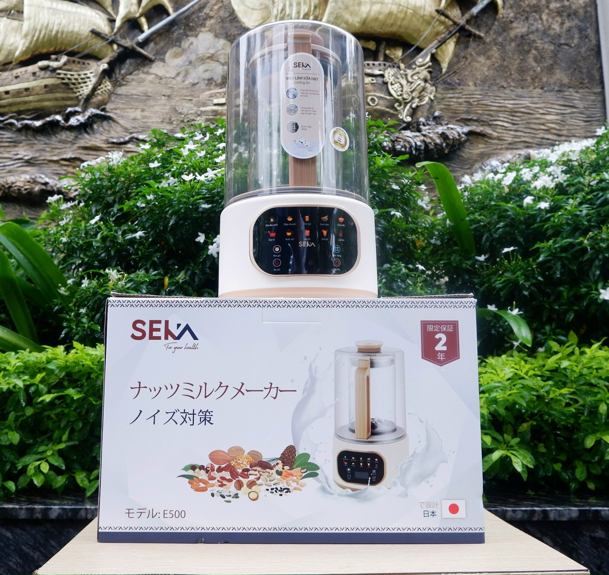 - Máy làm sữa hạt SEKA E500 được sản xuất bằng công nghệ hiện đại của Nhật, sử dụng các vật liệu an toàn cho sức khỏe. Thiết kế tinh tế, màu sắc trang nhã, được tích hợp lồng chống ồn/cách âm hiệu quả, máy làm sữa hạt SEKA chinh phục khách hàng không chỉ bởi sự tiện dụng mà còn là điểm nhấn cho không gian bếp trong gia đình hiện đại. Đặc điểm nổi bật của máy làm sữa hạt đa năng SEKA E500:
