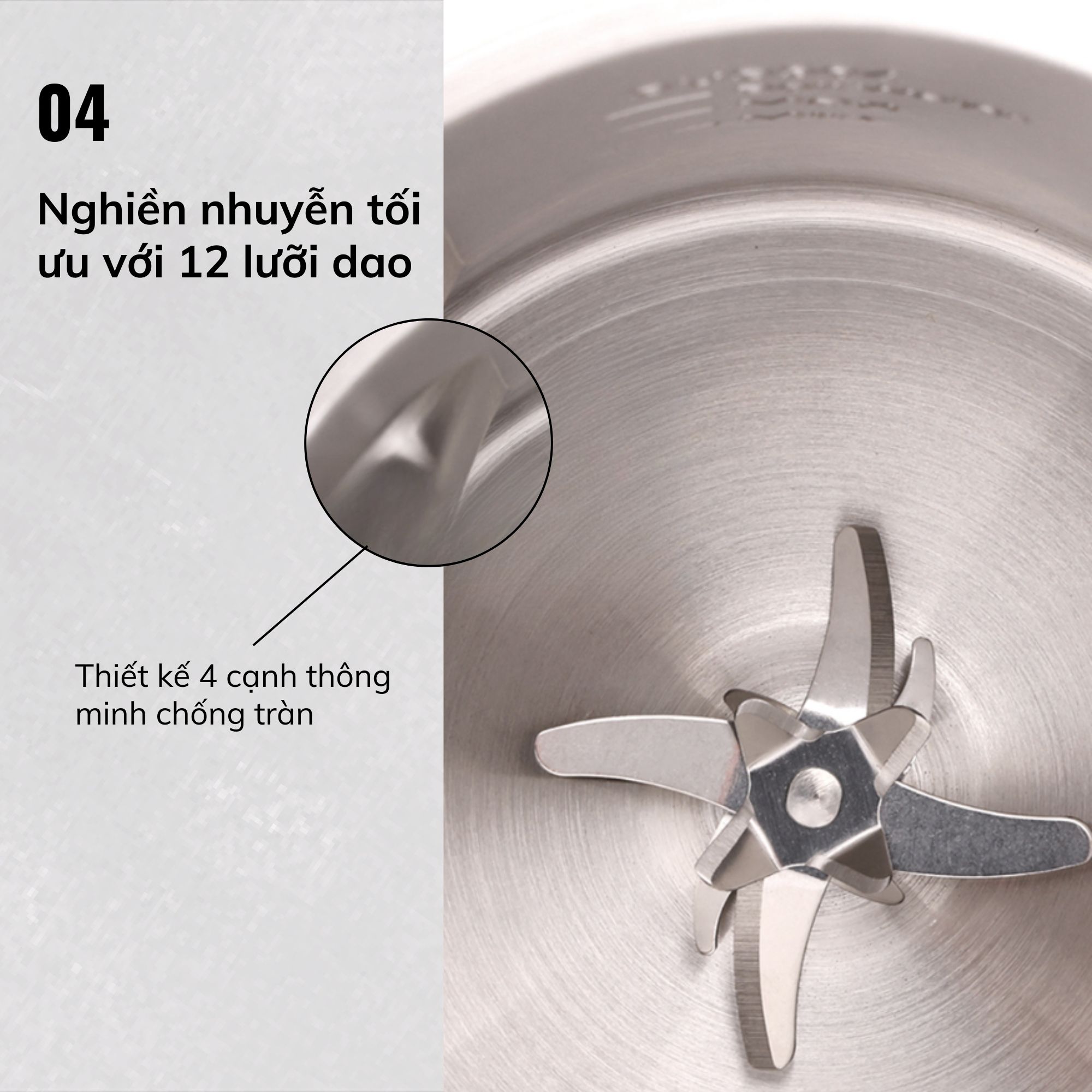 - Tính Năng Nổi Bật Công suất mạnh mẽ: Động cơ xay nhuyễn mịn, phù hợp với nhiều loại hạt. Bảng điều khiển cảm ứng dễ sử dụng: Thiết kế thông minh giúp thao tác đơn giản. Xay nấu nhanh chóng: Hoàn thành ly sữa hạt chỉ trong vài phút. Tiết kiệm thời gian, năng lượng: Giúp tối ưu quy trình nấu nướng, giảm công sức chế biến.