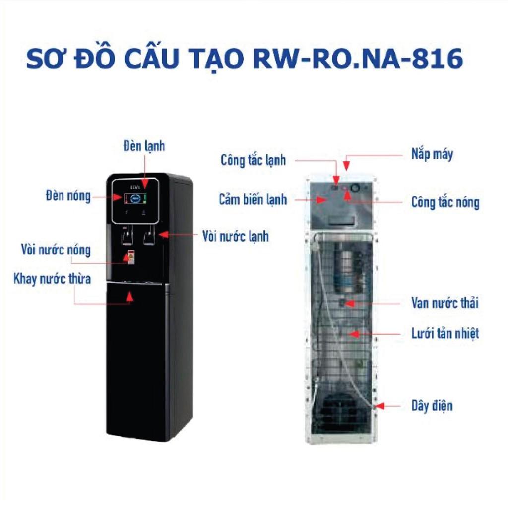 - Lõi 3 (Nano): Lõi lọc Nano diệt khuẩn & kim loại năng . Giữ khoáng cho cơ thể. Tích hợp 2 chế độ nóng - lạnh tiện lợi Dung tích bình chứa lớn, công suất lọc nhanh Máy lọc nước Rewa RW-NA-816S thiết kế dung tích bình lạnh đạt 3.8L, bình nóng 2L và công suất lọc tối đa 500L mỗi ngày, đáp ứng nhu cầu dùng nước thường xuyên của cả gia đình. An toàn, tiết kiệm, dễ sử dụng Sản phẩm công nghệ cao tiết kiệm điện năng, lõi đúc inline đạt tiêu chuẩn NSF & Water Quality, đảm bảo tiêu chuẩn và an toàn khi sử dụng. Máy lọc phù hợp với nguồn nước máy. Ngoài ra, vòi nước nóng còn có thiết kế khóa trẻ em, đảm bảo an toàn cho trẻ nhỏ khi không có người lớn ở nhà. Thiết kế nhỏ gọn, sang trọng Sản phẩm có thiết kế nhỏ gọn, không chiếm quá nhiều diện tích, phù hợp với cả những gia đình diện tích nhỏ. Màu sắc sang trọng, phù hợp với mọi không gian trong căn nhà của bạn.