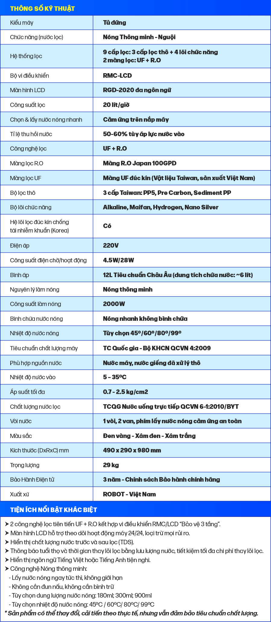 Máy Lọc Nước Nóng Thông Minh Nguội Lạnh ROBOT, Bảo Vệ 3 Tầng UF + R O + RMC LCD - Tư vấn: 0916489090