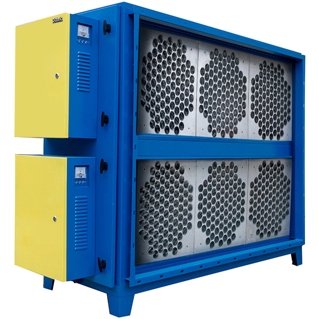 Nhiều nhà máy đốt than sử dụng hệ thống máy lọc tĩnh điện để kiểm soát các hạt than mịn trong không khí. Luồng khí trong phòng được thu vào hệ thống xử lý bằng quạt ly tâm, rồi đi tới buồng tạo ion âm và qua các bản cực điện. Kết quả là các hạt bụi được tích điện, trở thành ion rồi bị bản cực trái dấu hút về. Bụi than bám chặt trên bản cực, không thể theo luồng khí đi ra môi trường tự nhiên.
