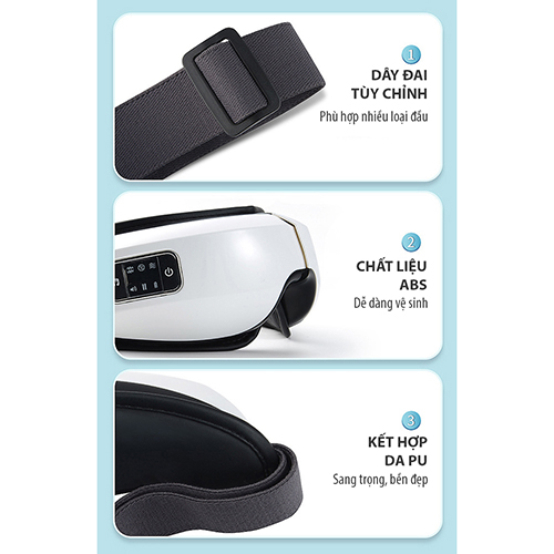 Tính năng massage rung ở tần số cao kết hợp với công nghệ massage túi khí giúp đôi mắt được thư giãn 1 cách tốt nhất, hỗ trợ làm giảm mệt mỏi, căng thẳng xung quanh mắt, hỗ trợ làm giảm các triệu chứng của thị giác như khô mắt, mỏi mắt, giữ cho đôi mắt khoẻ mạnh.