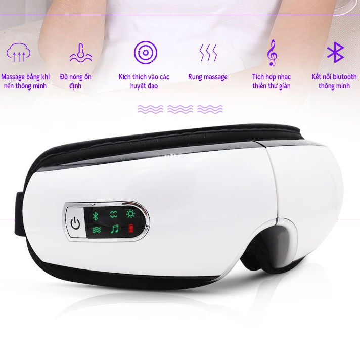 Máy Massage Mắt GDV Kết Hợp Chế Độ Rung Kết Nối Bluetooth, Làm Giảm Căng Thẳng Mệt Mỏi Và Lưu Thông Máu Cho Mắt - Hàng Chính Hãng công nghệ khí nén, Giảm quầng thâm,