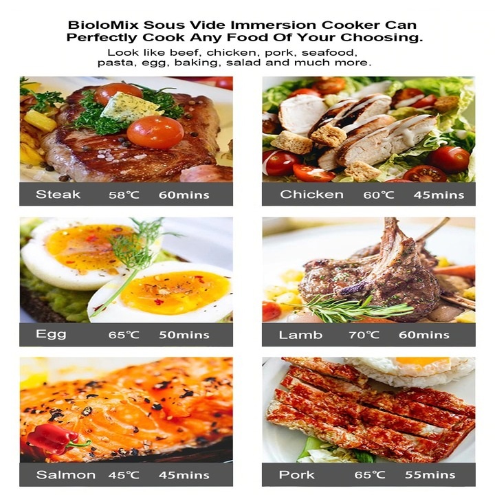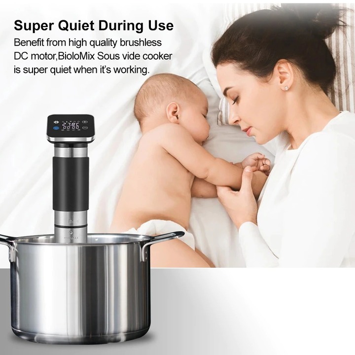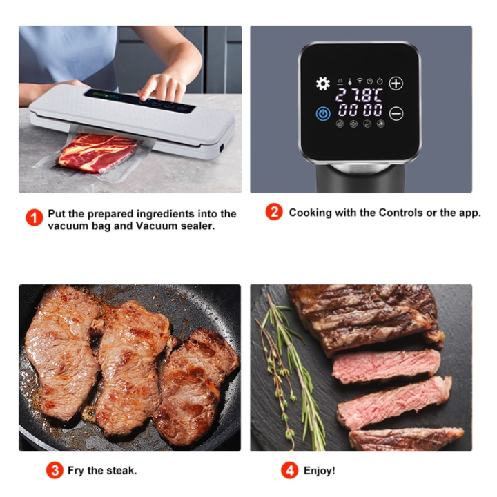 – Chỉ cần gắn nồi vào bất kỳ nồi nào, thêm nước, cho các nguyên liệu của bạn vào túi hút chân không. Bắt đầu nấu chỉ với một nút bấm trên thiết bị. Chế độ hẹn giờ và kiểm soát nhiệt độ của nồi Sous vide cho phép bạn thư giãn trong khi nấu ăn, các phần tiếp xúc nước bằng thép không gỉ có thể tháo rời của bếp sous vide an toàn và vệ sinh dễ dàng, thiết bị nhà bếp này dễ dàng vệ sinh và bảo trì.
