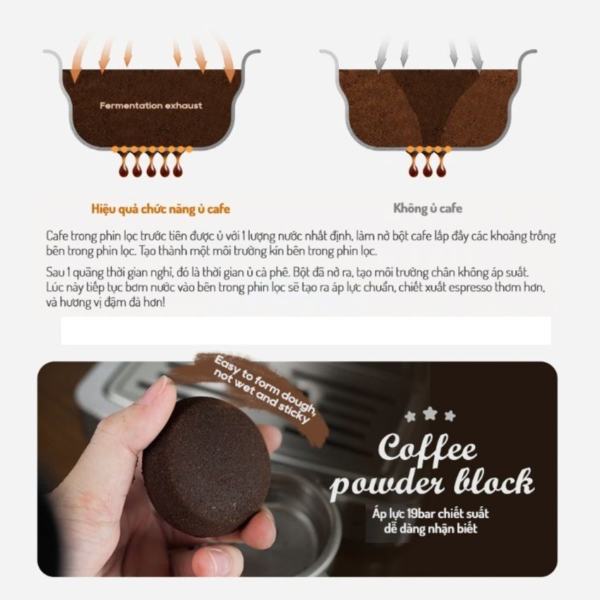 - Tích hợp đồng hồ áp suất kiểm soát shot cafe espresso