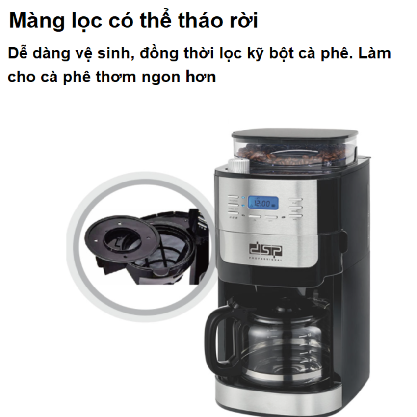 Máy pha cà phê bán tự động xay hạt cà phê DSP KA3055 - Công suất 1000W - HÀNG NHẬP KHẨU Máy pha cà phê bán tự động DSP KA3055 được thiết kế với