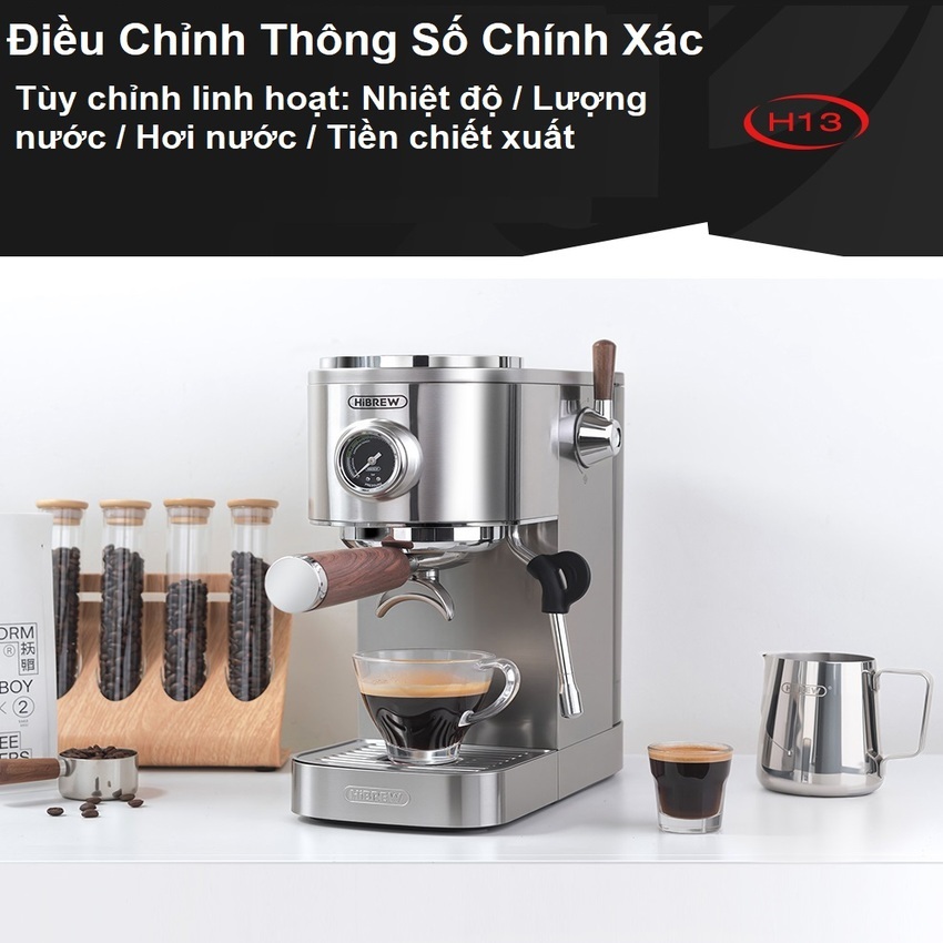 Máy pha cà phê Cappuccino, Ristretto, Espresso, Latte chuyên nghiệp HiBREW H13 Tiktok
