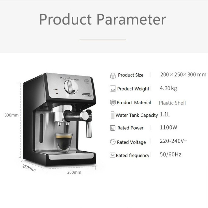 Công suất 1350W Bơm áp lực: 15 bar Dung tích: 1,1L Có thể pha Espresso và Cappuccino Bình chứa nước có thể tháo rời dễ dàng, van an toàn hoạt động linh hoạt giúp bạn