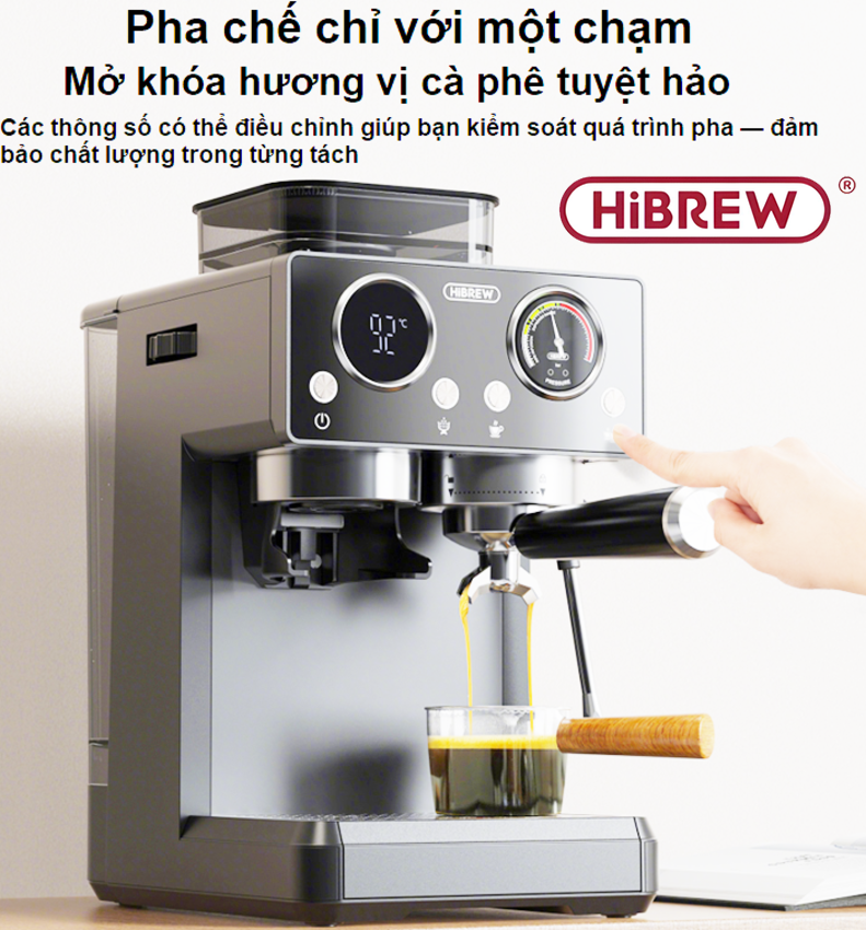Máy pha cà phê Espresso bán tự động 3 trong 1 tự động pha Espresso, Latte, Cappuccino HiBREW H13A