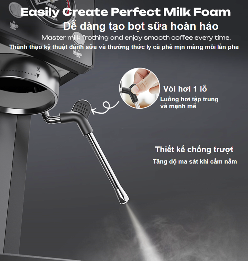- Tạo bọt sữa dễ dàng