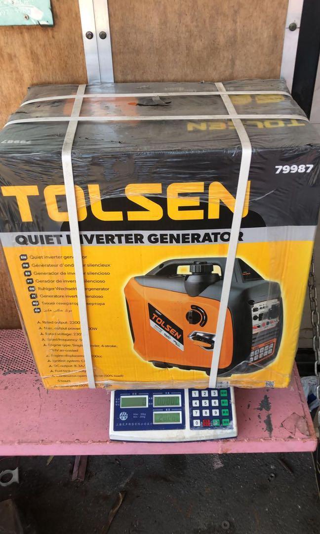 Thông số kĩ thuật -Mã sản phẩm: 79987 -Thương hiệu: TOLSEN -Xuất xứ: Trung Quốc -Đầu ra định mức: 2000w -Tối đa công suất đầu ra: 2200w -Điện áp định mức: 220V -Tần số định mức: 50Hz -Loại động cơ: Xylanh đơn, 4 kỳ, làm mát bằng gió -Dung tích động cơ: 98cc -Hệ thống đánh lửa: CDI ( BUGI ) -Đầu ra DC: 8,3A / 12V -Dung tích thùng nhiên liệu: 4L -Thời gian hoạt động liên tục (50% tải): 5 giờ -Mức ồn (50% tải): < 65dB -Trọng lượng tịnh: 18.5kgs