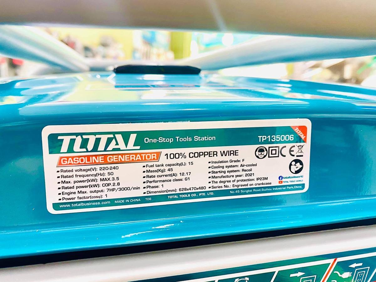 MÁY PHÁT ĐIỆN XĂNG 2.8 KW/3.5KW TOTAL TP135006 - HÀNG CHÍNH HÃNGMÁY PHÁT ĐIỆN XĂNG 2.8 KW/3.5KW TOTAL TP135006 - HÀNG CHÍNH HÃNGMÁY PHÁT ĐIỆN XĂNG 2.8 KW/3.5KW TOTAL TP135006 - HÀNG CHÍNH HÃNGMÁY PHÁT ĐIỆN XĂNG 2.8 KW/3.5KW TOTAL TP135006 - HÀNG CHÍNH HÃNG
