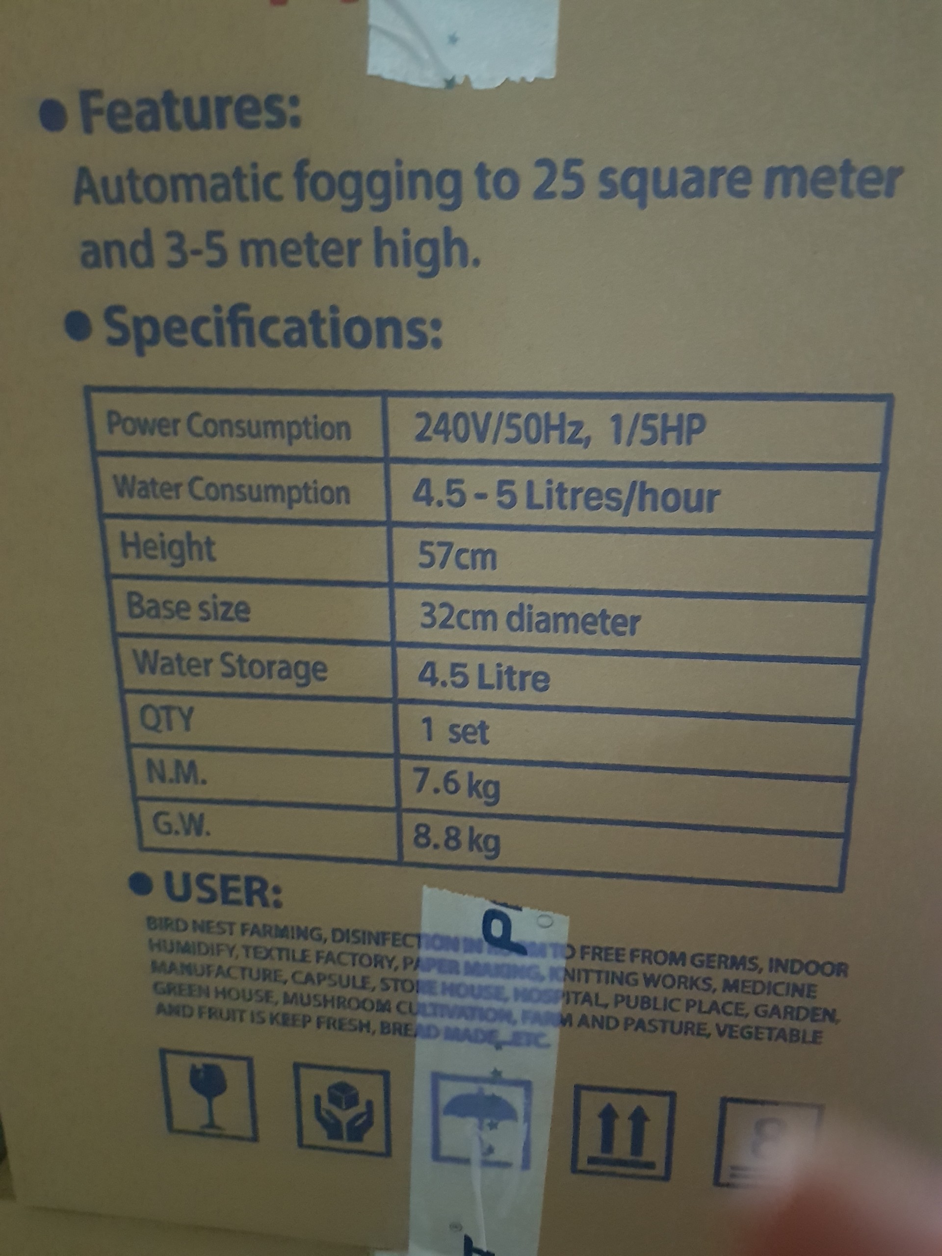 Xuất xứ: Taiwan Công suất: 100W Nặng: 8kg Nguồn điện: 220V-240VTính năng Loại máy tạo ẩm li tâm phun sương Thiết kế hiện đại, tinh tế Chức năng tạo ẩm và khử trùng Chất liệu