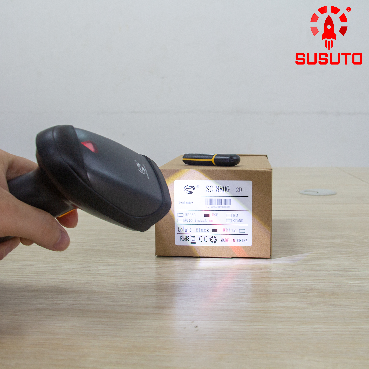 Đầu đọc mã vạch SC-880G-2D có khả năng đọc mã vạch bị mờ xước, mã vạch qua lớp nilon và các sản phẩm có tem nhãn mã vạch nhỏ.