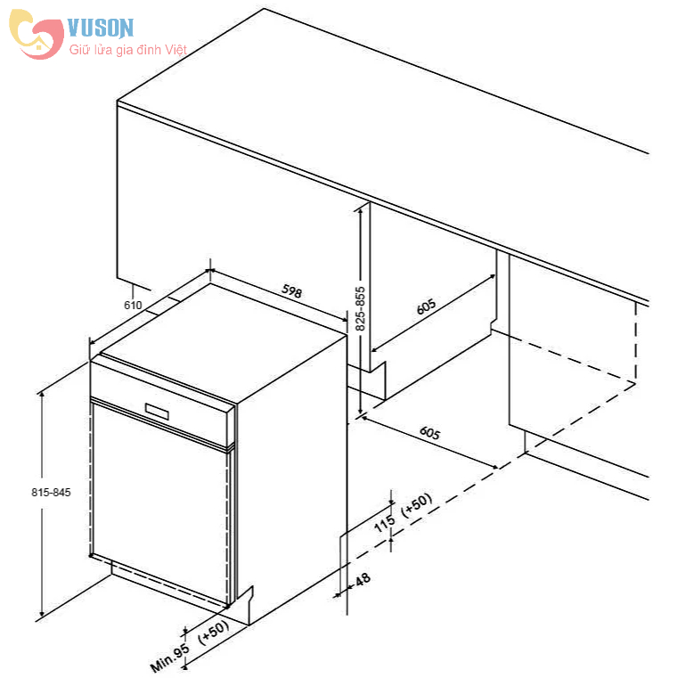 • Kích thước sản phẩm : 598R x 598S x 815-845C (mm)