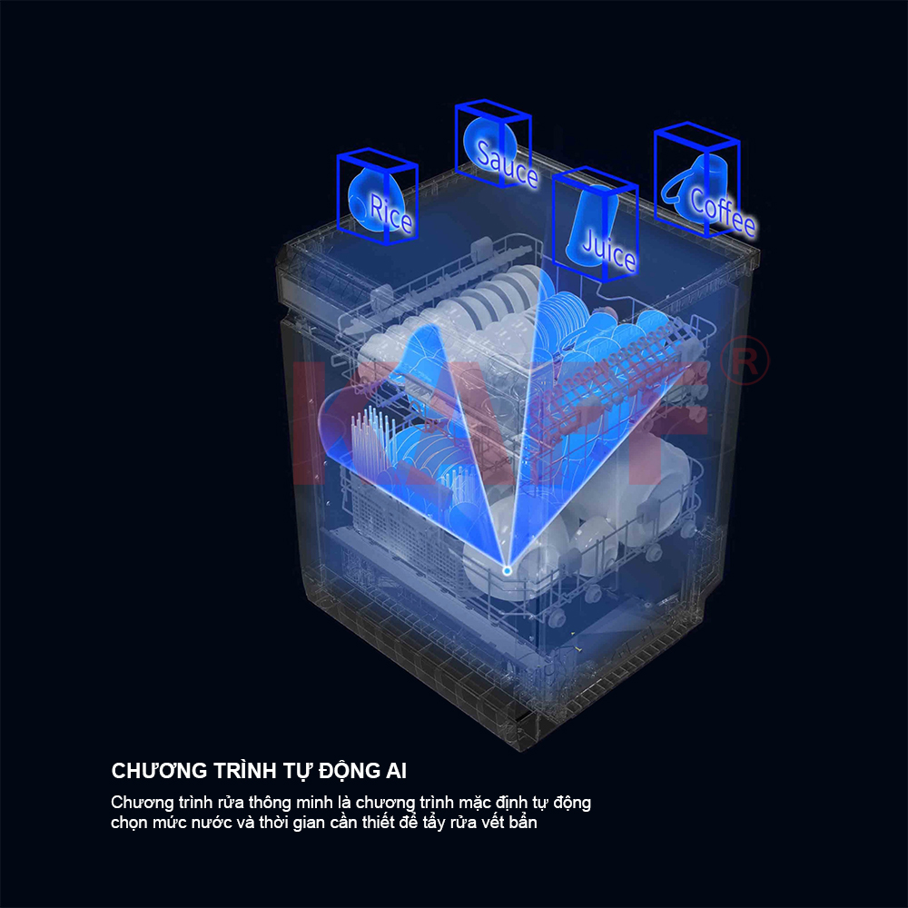TÍNH NĂNG NỔI BẬT: - Hệ thống giàn 2 giá đỡ linh hoạt, chứa được 13 bộ bát đĩa - 6 chương trình rửa tiện lợi: (tự động, chuyên sâu, rửa thưởng, rửa tiết kiệm,