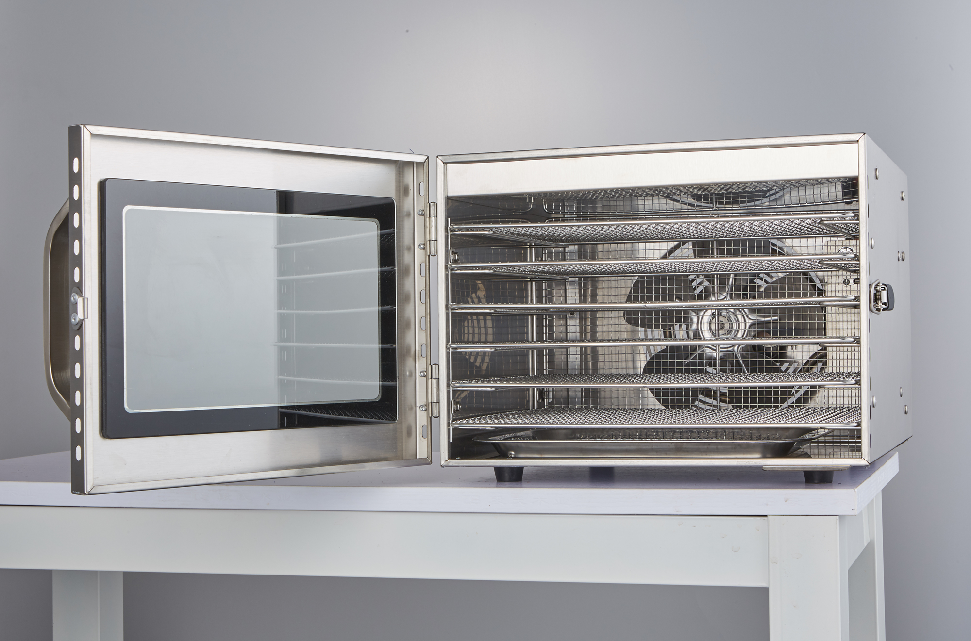 Các khay có thể tháo lắp dễ dàng, tiện lợi cho việc vệ sinh sau khi dùng. Thanh nhiệt được làm bằng inox 304 và cánh quạt làm bằng nhôm rất thích hợp trong môi trường sấy nóng.