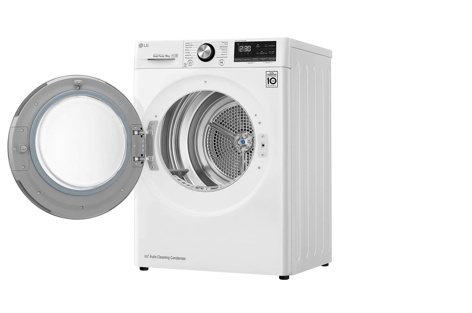 LG DVHP09W đáp ứng khối lượng quần áo sấy đến 9kg, phù hợp cho những hộ gia đình có số thành viên từ 3 - 5 người.