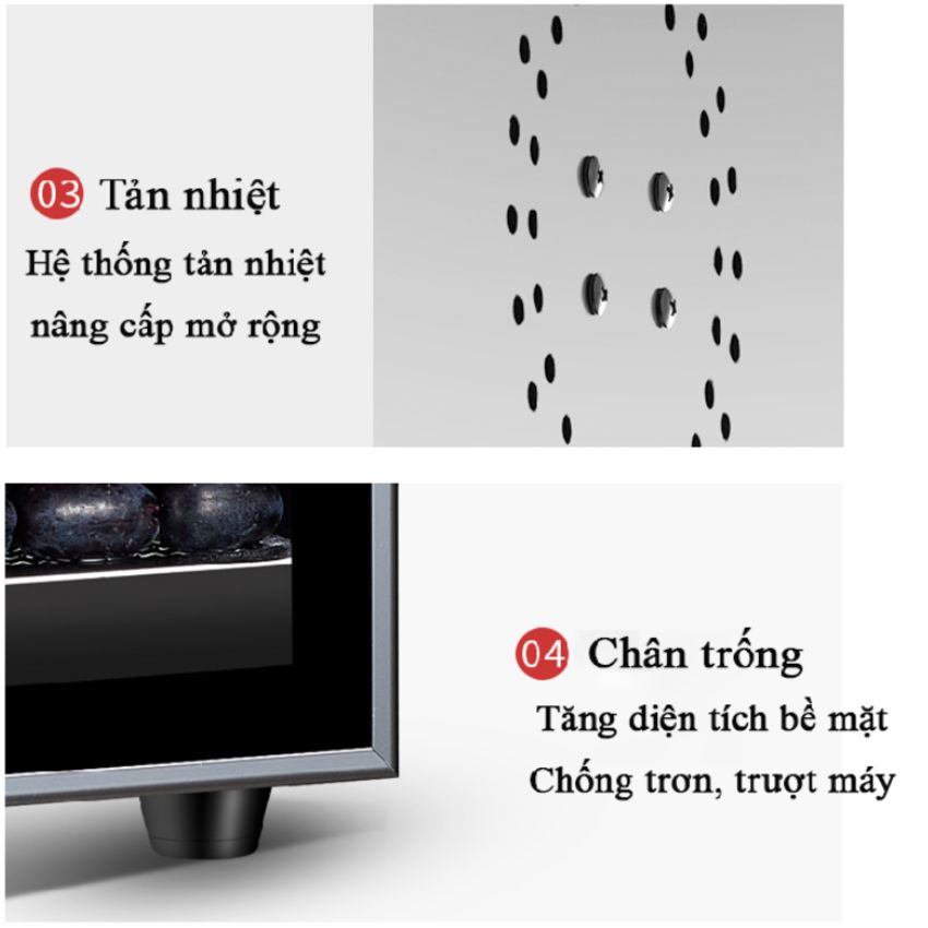 - Khoảng cách giữa trên và dưới hai khay: 3cm