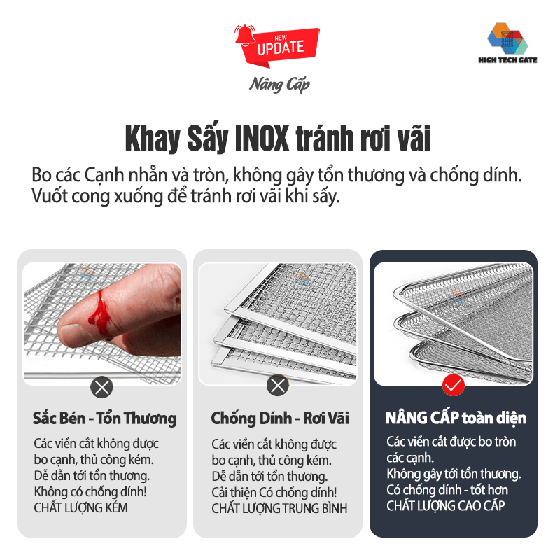 ✨Máy Sấy Thực Phẩm Inox HTG 16 Khay 40cm Khay Inox SS304 Chống Rỉ Sét, Chống Rơi, Hàng Chính Hãng