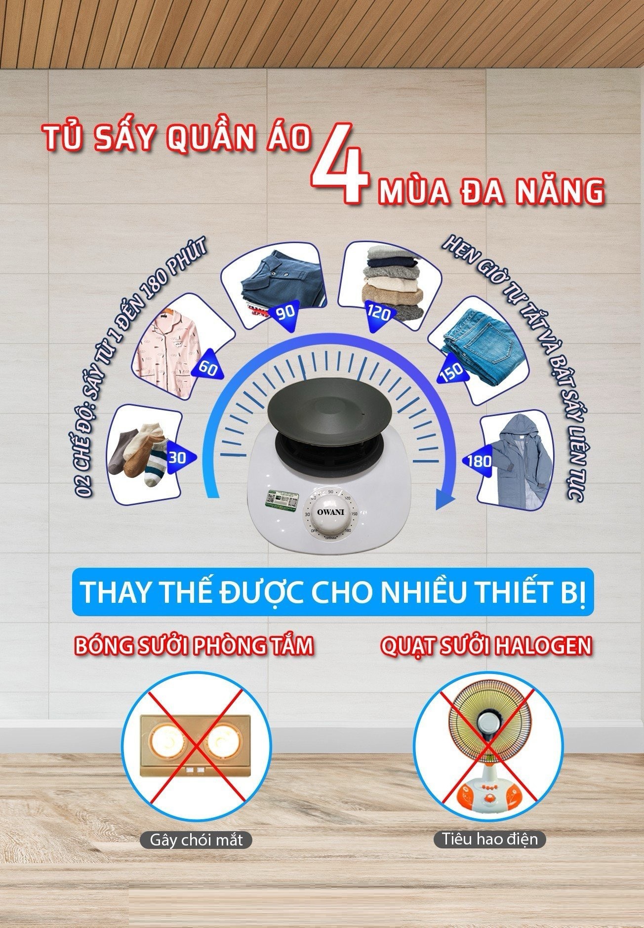 ĐẶC ĐIỂM NỔI BẬT: - Công dụng: làm khô nhanh quần áo, loại bỏ mùi hôi khó chịu, bụi bẩn trên quần áo. - Sử dụng bộ phát điện ổn định PTC, tiết kiệm điện. -