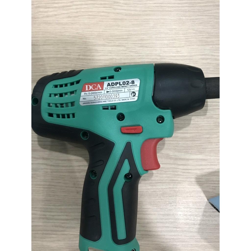 Nếu các bạn chưa biết, DCA là một thương hiệu chuyên sản xuất các thiết bị, dụng cụ dân dụng nổi tiếng đến từ Trung Quốc. Các sản phẩm của DCA nổi tiếng với độ bền cao, mẫu mã đẹp và giá thành rất cạnh tranh. Máy siết vít pin 12V DCA ADPL02-8EK là một thiết bị dân dụng được rất nhiều người tiêu dùng Việt Nam đánh giá cao và lựa chọn để mua sắm. Máy siết vít DCA ADPL02-8EK được sử dụng để siết chặt các loại ốc vít với nhiều kích cỡ khác nhau, giúp tiết kiệm sức lao động của người thợ. Máy có tốc độ không tải đạt 2400 vòng/phút; tốc độ búa đạt tối đa 3000 lần/phút và lực búa tối đa là 200 Nm. Kích thước nhỏ gọn và trọng lượng 1kg giúp người dùng có thể dễ dàng vận chuyển và sử dụng máy siết vít pin 12V DCA ADPL02-8EK tại bất cứ vị trí nào cần thiết. Bên cạnh đó, thiết bị được hoàn thiện chắc chắn, có bộ vỏ bằng nhựa cao cấp giúp hạn chế tác động khi va chạm và nâng cao độ bền của sản phẩm.