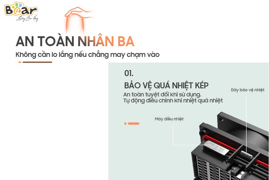 Quạt sưởi Bear DNQ-C20B1, không còn nỗi lo gặp sự cố như chập điện, cháy bỏng khi chạm vào, đổ ngã máy sưởi gây cháy nổ Công nghệ hiện đại được tích hợp trong quạt sưởi gốm Bear, đem đến sự tiện nghi và an toàn cho cả gia đình bạn.