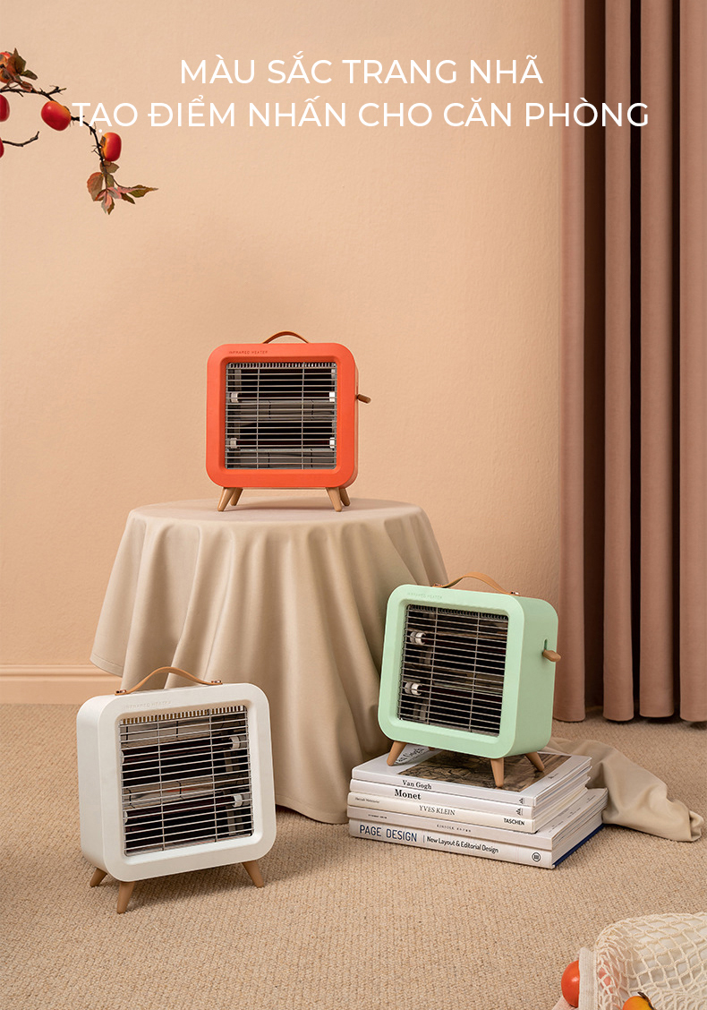 Thiết kế nhỏ gọn, tiện dụng Sưởi ấm nhanh, không gây tiếng ồn 3 mức phát nhiệt Có tính năng quay đảo hướng phát nhiệt, phạm vi phát nhiệt rộng Lưới tản nhiệt thiết kế