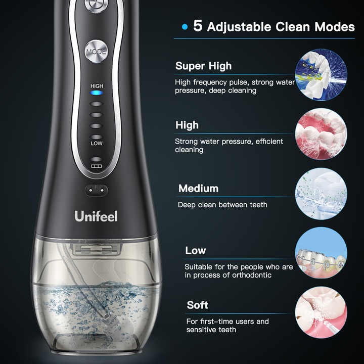 - Unifeel HF-6 được chứng minh lâm sàng giúp cải thiện sức khỏe nướu cũng như chỉ nha khoa. Giúp cải thiện sức khỏe nướu chỉ trong hai tuần.Với Unifeel HF-6, việc làm sạch toàn bộ miệng của bạn mất ít hơn 60 giây mỗi ngày. Chỉ cần chọn lực bơm yêu thích của bạn (tích hợp 5 chế độ bơm) và giữ nút kích hoạt để tự động bơm liên tục hoặc nhấn và nhả cho chế độ bơm thủ công.