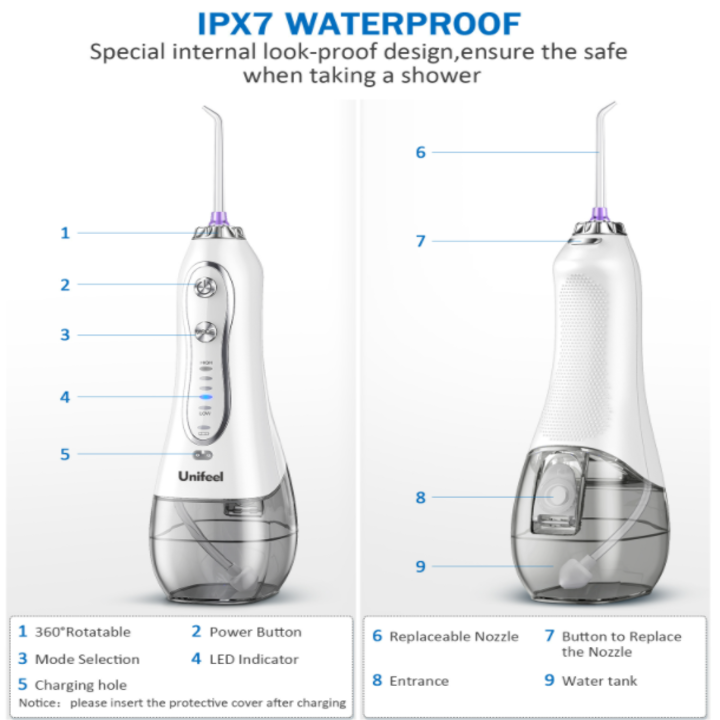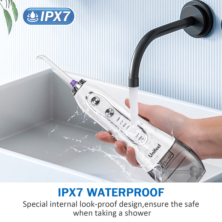 ✨Máy tăm nước kiêm bàn chải đánh răng cầm tay nhãn hiệu Unifeel HF-6 Có 5 chế độ hoạt động - HÀNG NHẬP KHẨU
