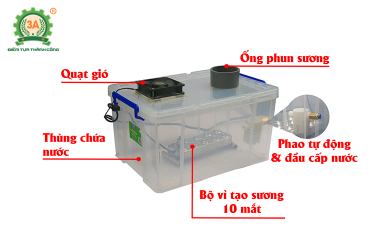 • Tiết kiệm nước vì chỉ một lượng nước nhỏ nhưng tạo được lượng sương lớn phun khắp nhà trồng nấm.