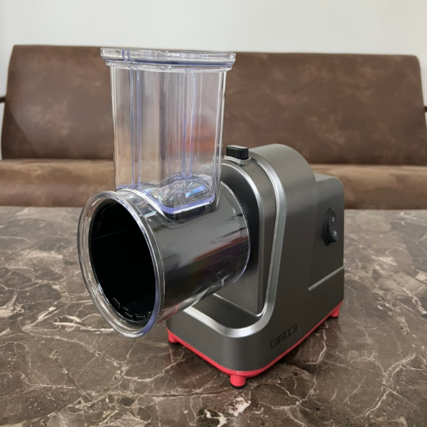 - Đa phần các dòng máy cắt rau củ quả gia đình có thiết kế nhỏ gọn, trọng lượng vừa phải. Bạn có thể đặt máy ngay trên kệ bếp hoặc mặt bàn để thao tác.