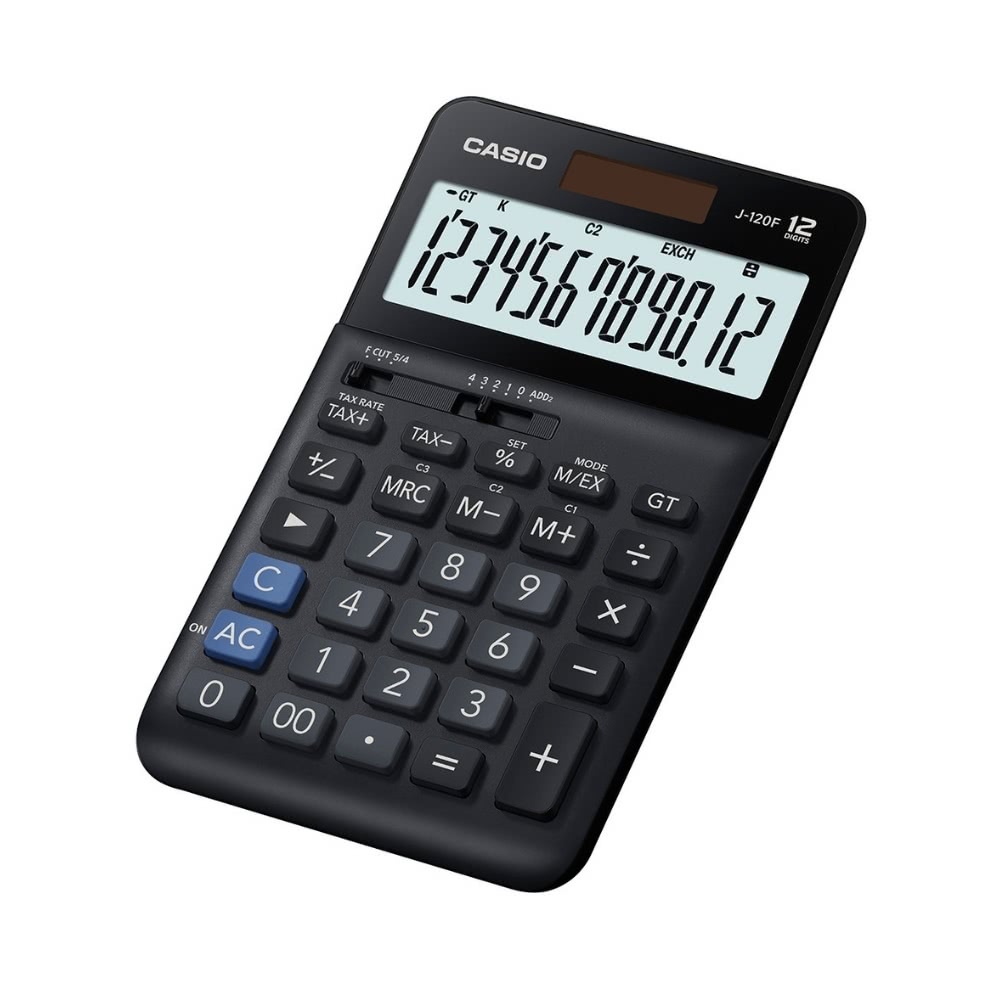 Máy tính kiểm tra Casio MJ-120Plus BK. Dòng máy tính có thể kiểm tra lại tối đa 300 phép toán, phù hợp cho nhân viên văn phòng, kế toán hay cửa hàng kinh doanh với