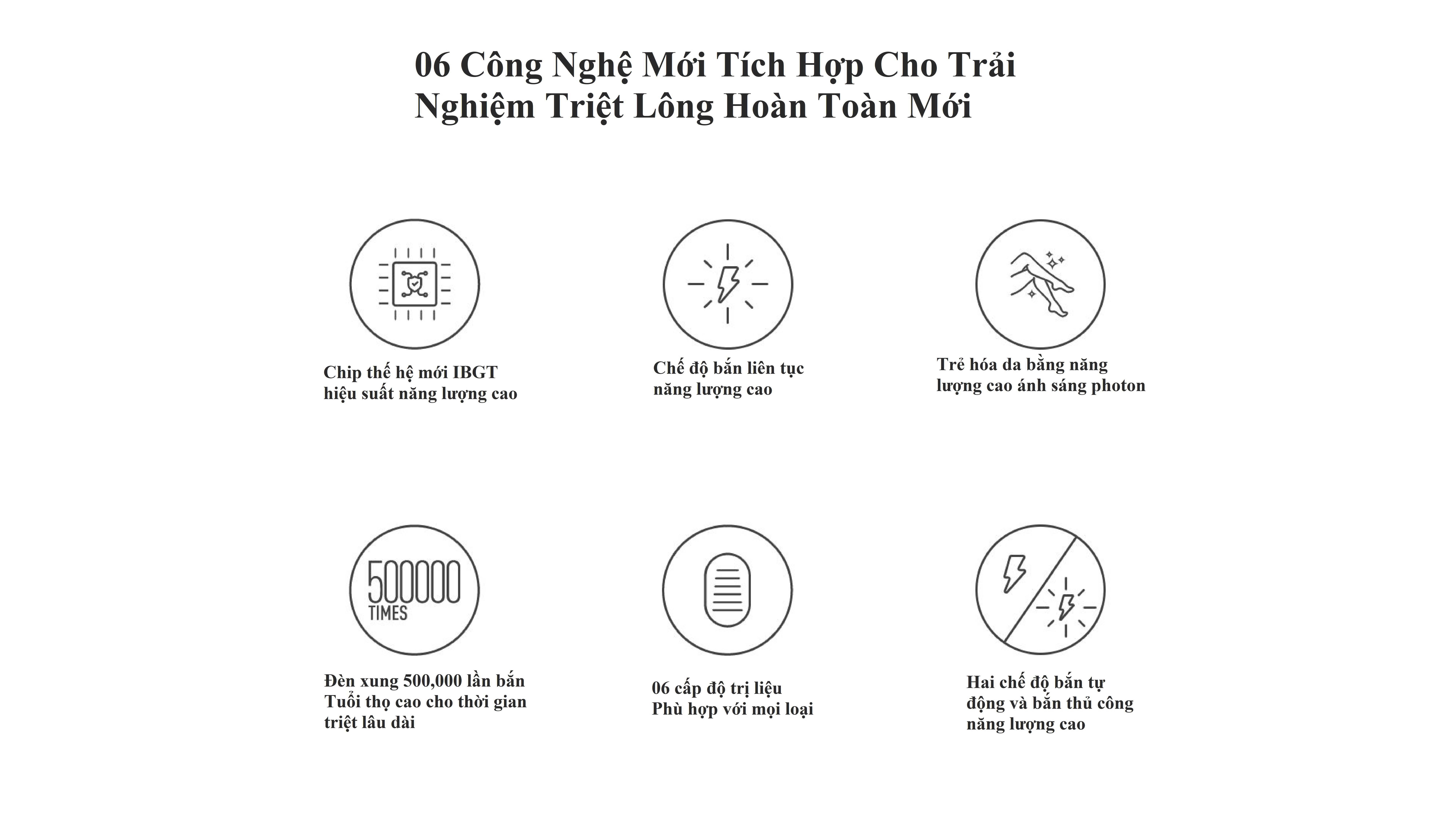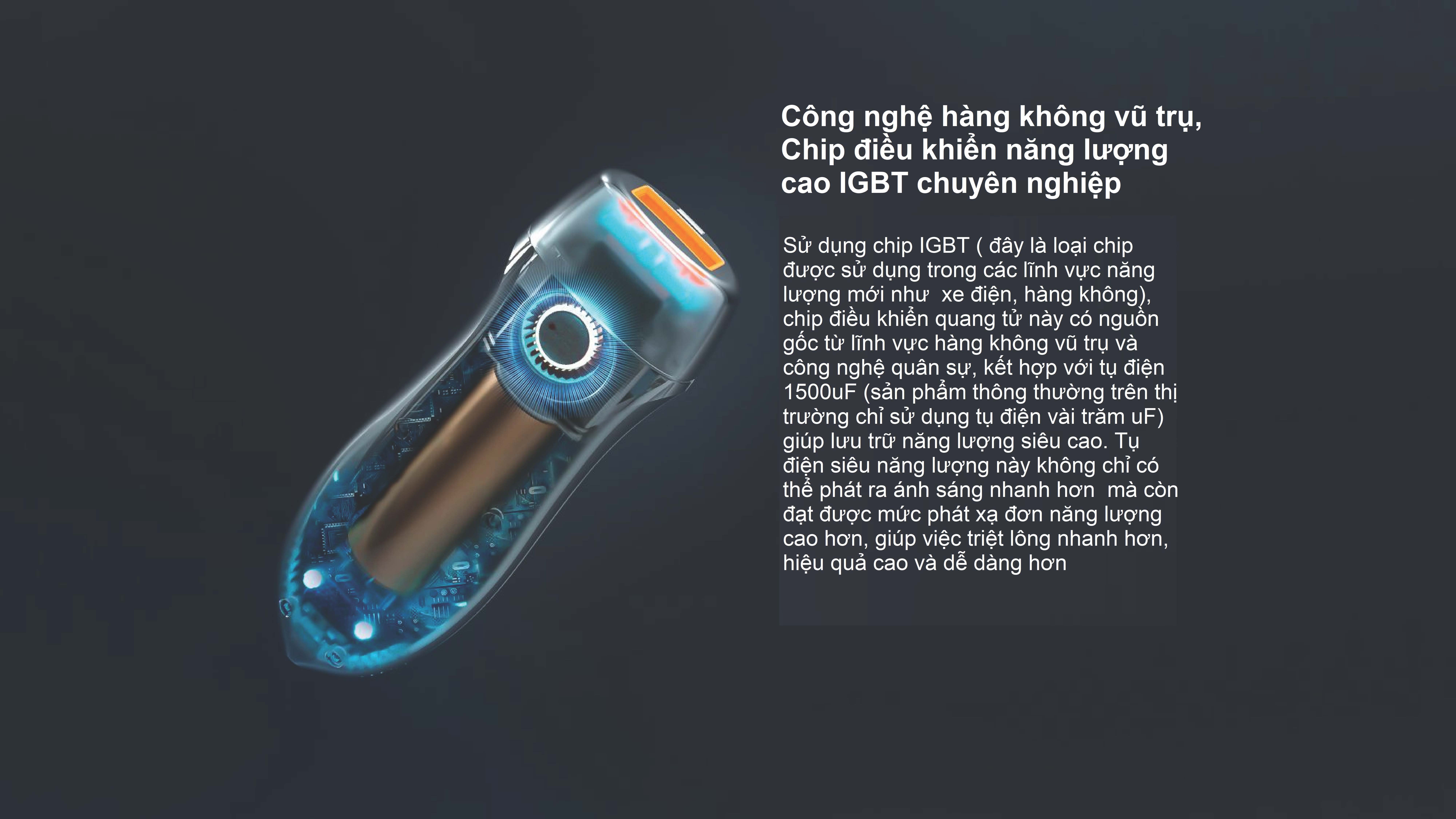 - Máy có tới 500.000 lần xung cùng chip IGBT năng lượng cao cho thời gian sử dụng lâu dài.