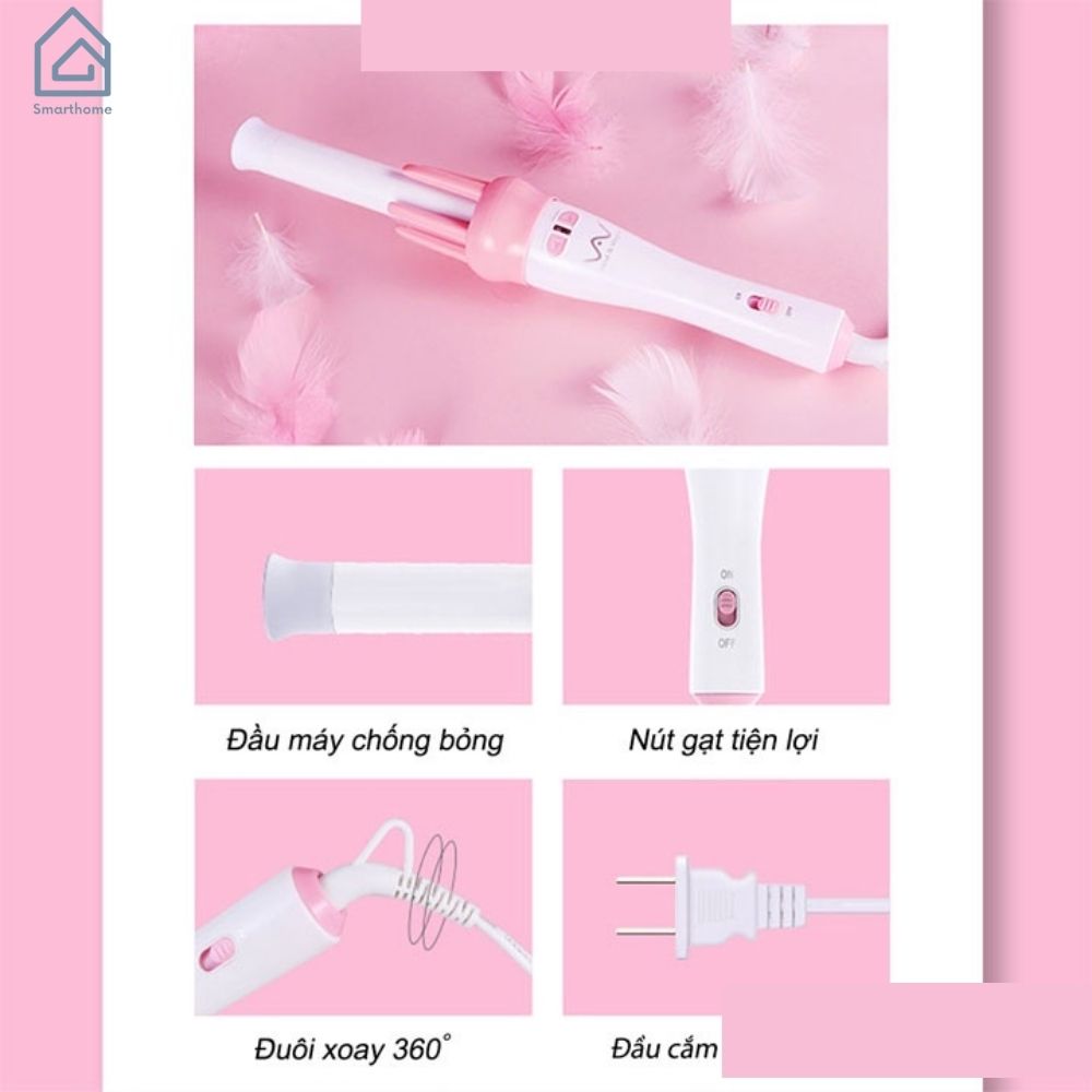- Tốc độ làm nóng: 200 độ C trong khoảng 30 giây Sản phẩm sử dụng Chip cảm biến nhiệt độ Tên sản phẩm: Máy Uốn Tóc Uốn Xoăn Xoay Tự Động 360 Độ Chất liệu: Nhựa ABS cao cấp Kích thước: 30*50cm Màu sắc: Trắng Hồng Đặc điểm sản phẩm Thiết kế nhỏ gọn, cầm tay tiện lợi Tốc độ làm nóng nhanh gấp 2 lần so với các loại máy uốn thông thường Có 2 chế độ uốn giúp cho khách hàng có thể tự do lựa chọn đầu uống xoay 360 độ giúp cho tóc vào nếp được đẹp hơn, xoăn tự nhiên hơn Hệ thống tự động xoay giúp cho khách hàng có thể sử dụng một cách đơn giản hơn, tránh tình trạng bỏng tay trong quá trình dùng Có hệ thống thanh uốn giúp giữ tóc và uốn xoay hiệu quả Tốc độ xoay trái, phải nhanh chóng Tạo kiểu tóc xinh xắn, đáng yêu chỉ trong vài phút Quà tặng kèm