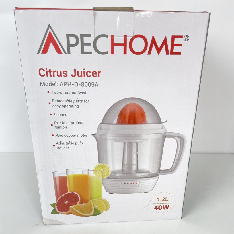️ MÔ TẢ SẢN PHẨM Máy vắt cam Apechome APH-D-8009A được thiết kế bền đẹp, chắc chắn. Chất liệu nhựa nhẹ, dễ vệ sinh sau khi sử dụng. Máy có dung tích 1.2 lít, công