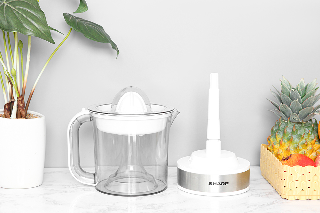 Máy vắt cam Sharp thiết kế gọn nhẹ, màu trắng sáng tươi trẻ, có tay cầm chắc chắn Chuyên dụng để vắt các loại hoa quả họ cam như cam, bưởi, quýt, chanh,… đáp ứng nhu