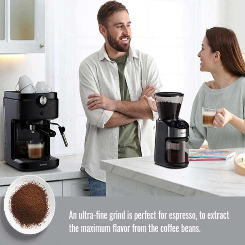 Máy xay hạt cà phê Espresso cao cấp Shardor BD-CG018 Hệ thống nấc điều chỉnh cỡ xay linh hoạt, tiện dụng cho mọi nhu cầu pha chế - Để có được tách cà phê Espresso