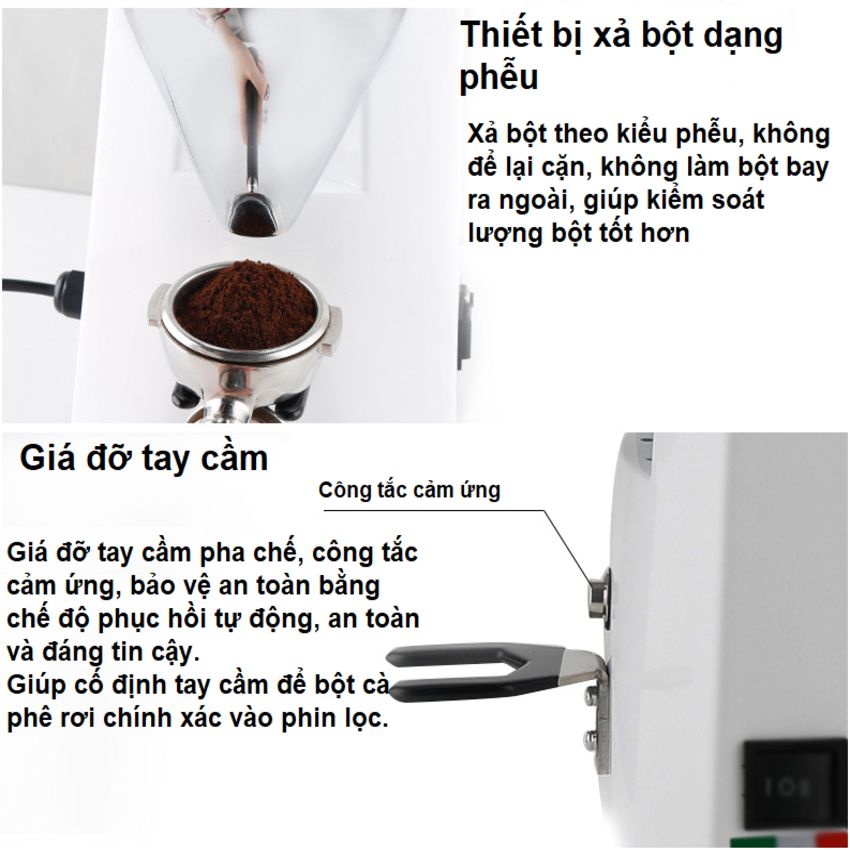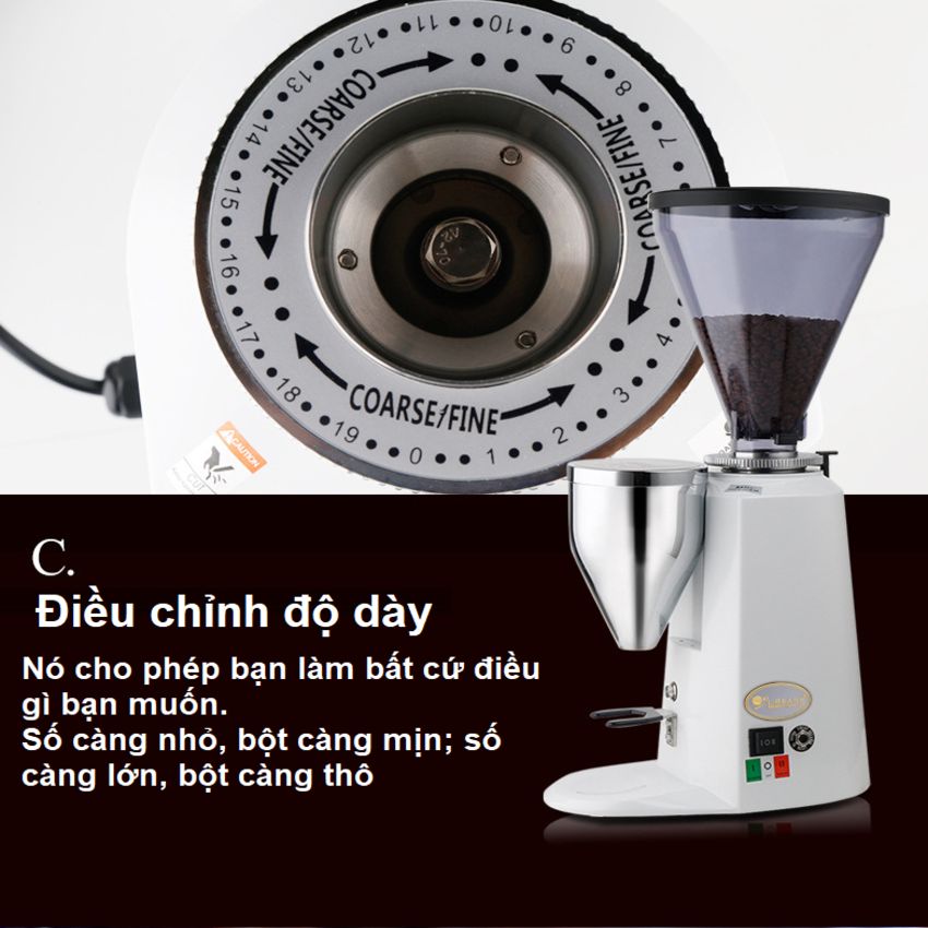 - Mỗi loại hạt cà phê sẽ có yêu cầu về độ mịn khi pha máy khác nhau nhằm giữ đúng hương vị ban đầu của nó. Nếu tiêu chí này không được đáp ứng, hương vị của những ly cà phê tới tay thực khách sẽ hoàn toàn bị biến đổi, quá đắng hoặc quá chát. Thông số kỹ thuật sản phẩm