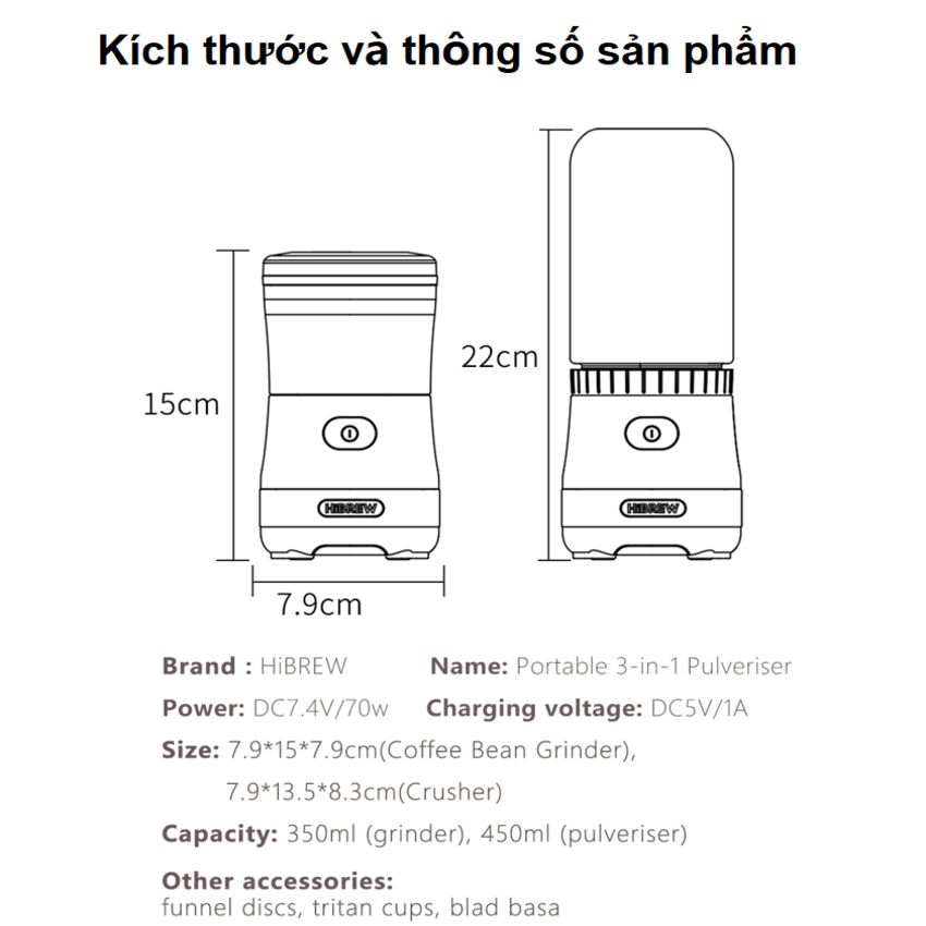- Máy xay hạt cà phê dùng pin cầm tay 3 trong 1 HiBREW G2 sở hữu thiết kế nhỏ gọn cùng cơ chế vận hành đơn giản, các bạn có thể mang theo khi đi leo núi, cắm trại hay đi du lịch cùng gia đình.