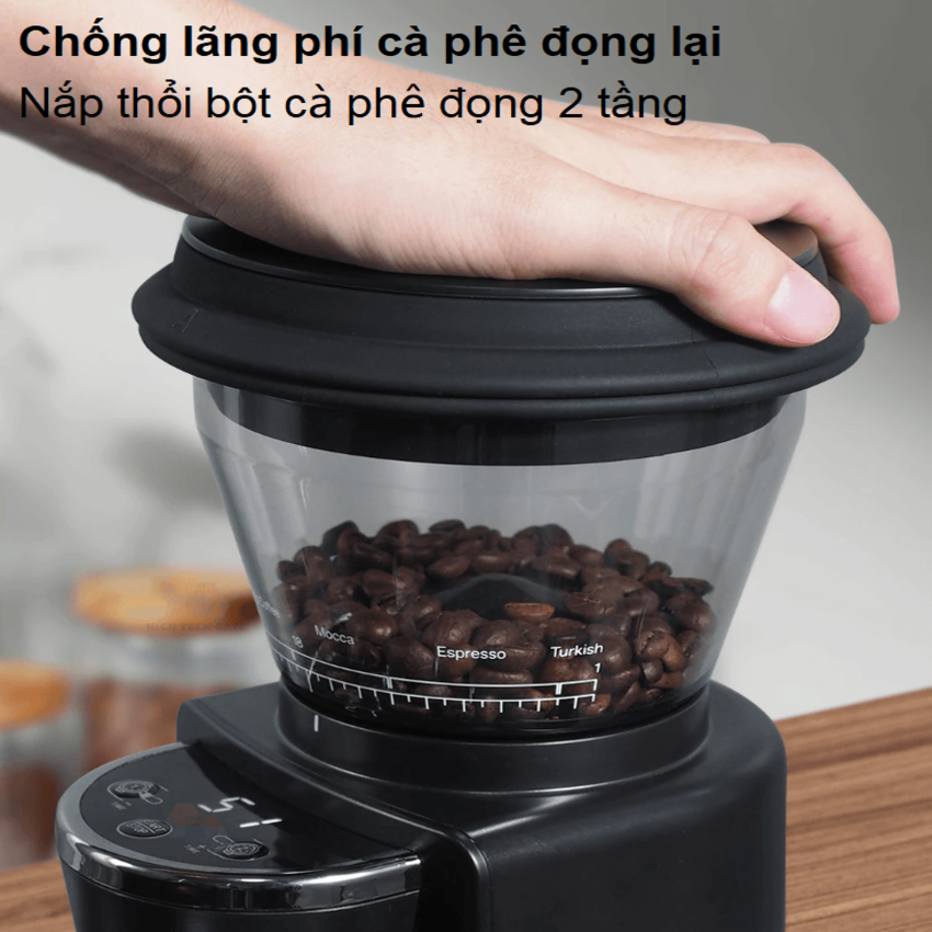 - Khay chứa cà phê trong suốt giúp bạn dễ dàng quan sát cà phê đang xay đồng thời dễ dàng tháo lắp tạo sự thuận tiện cho bạn khi chùi rửa.