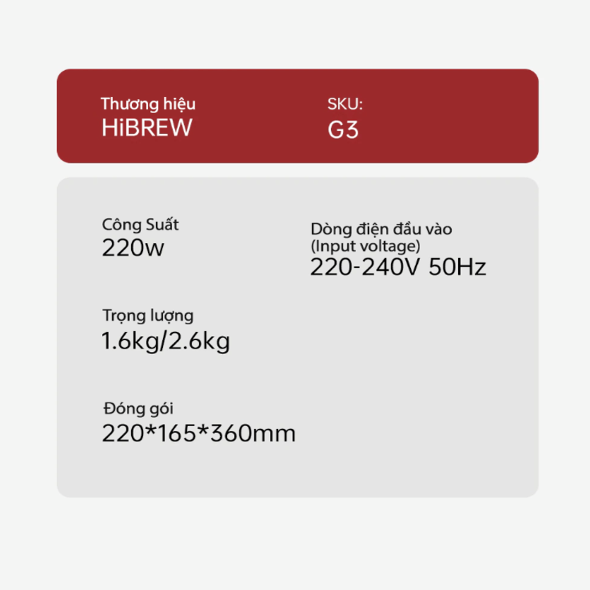 Mua tại TiktokMáy xay hạt cà phê tự động tích hợp 34 chế độ xay thương hiệu HiBREW G3 công suất 220W - Hàng Chính Hãng Hiện nay, cà phê là thức uống không thể thiếu của nhiều người, nhưng làm sao để thưởng thức được ly cà phê thơm ngon do chính tay mình làm. Giới thiệu máy xay hạt cà phê HiBREW G3 tự động, tích hợp 34 chế độ xay, chống vón cục tĩnh điện đặc biệt. Bạn sẽ dễ dàng thưởng thức những tách cà phê thơm ngon, chỉ mất vài phút cùng thao tác đơn giản, máy sẽ nhanh chóng nghiền hạt cà phê thành bột mịn theo đúng sở thích của bạn. Máy xay hạt cà phê HiBREW G3 được thiết kế sang trọng, hiện đại, máy nhỏ gọn và tinh tế sẽ đáp ứng được nhu cầu của các hộ gia đình, quán cà phê nhỏ hay cho văn phòng. Chức năng điều chỉnh độ mịn cà phê