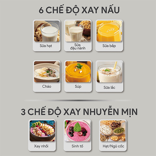 Máy xay nấu đa năng Bluestone BLB-6033Công suất xay: 800W; Công suất nấu: 800W6 chế độ gia nhiệt: sữa hạt, sữa đậu nành, hâm nóng/giữ ấm, cháo, súp, sữa bắp.3 chế độ không gia nhiệt: sinh tố detox...