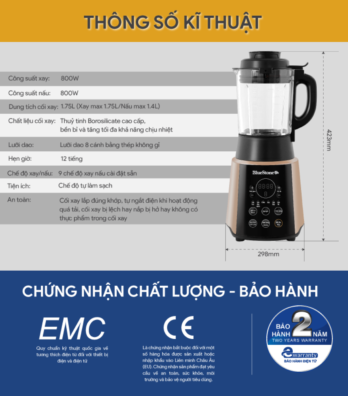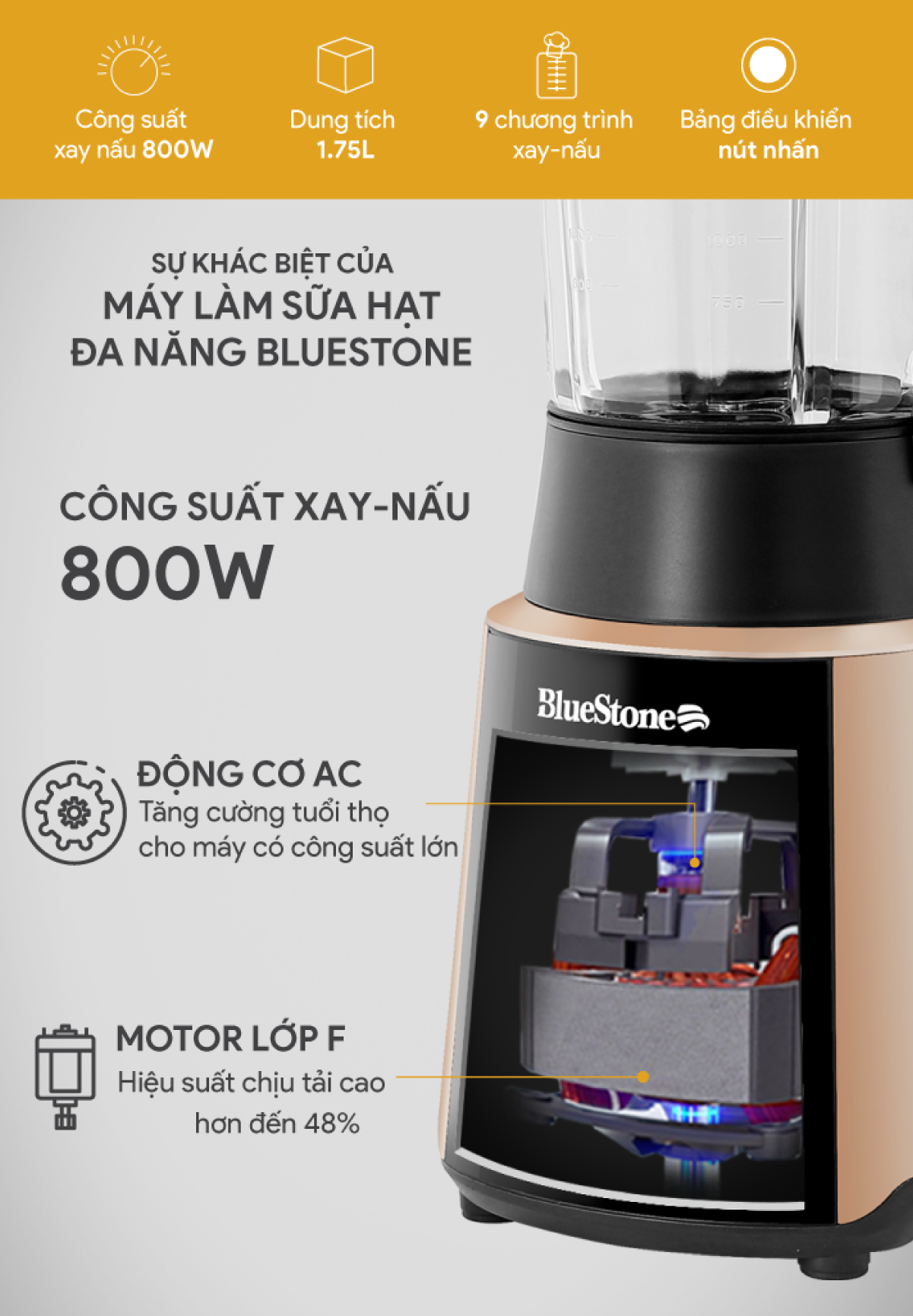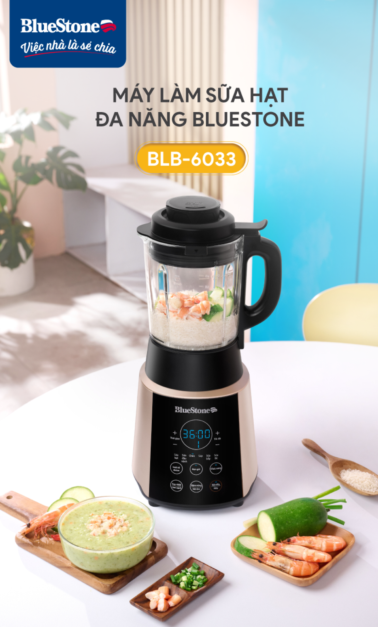 ✨Máy Xay Nấu Sữa Hạt Đa Năng BlueStone BLB-6033 - Công suất 800W - 9 chương trình nấu - Bảo hành 24 tháng - Hàng chính hãng