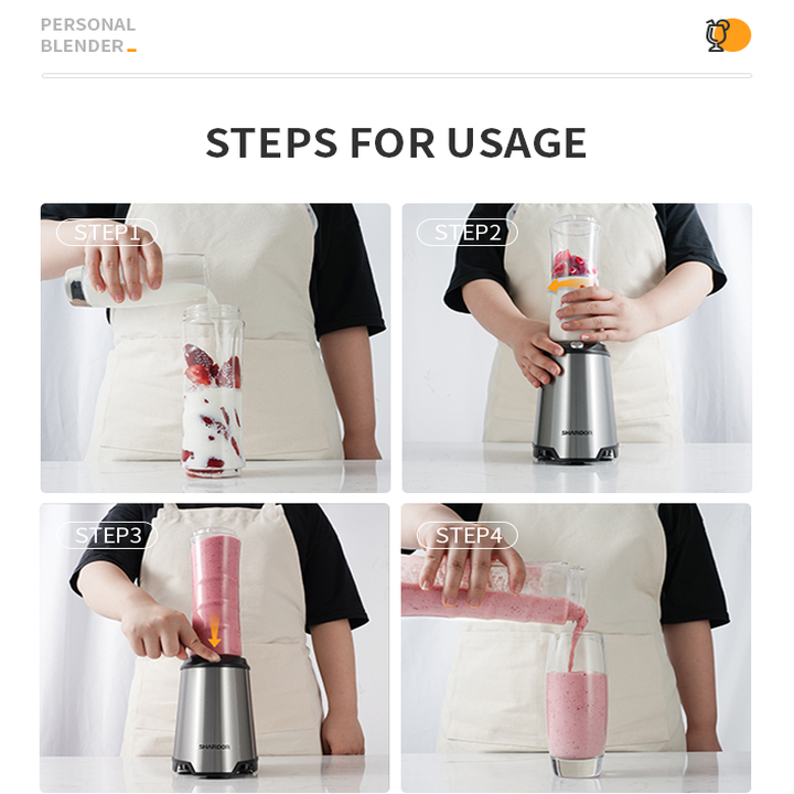 - Đổ một ít nước, sữa hoặc sữa chua Lắp nắp xay, úp ngược, vặn chặt Cắm điện, máy sẽ tự động xay khi vặn khớp. Sau khi xay xong, thay nắp để đem ly trái cây ra ngoài Lưu ý khi sử dụng
